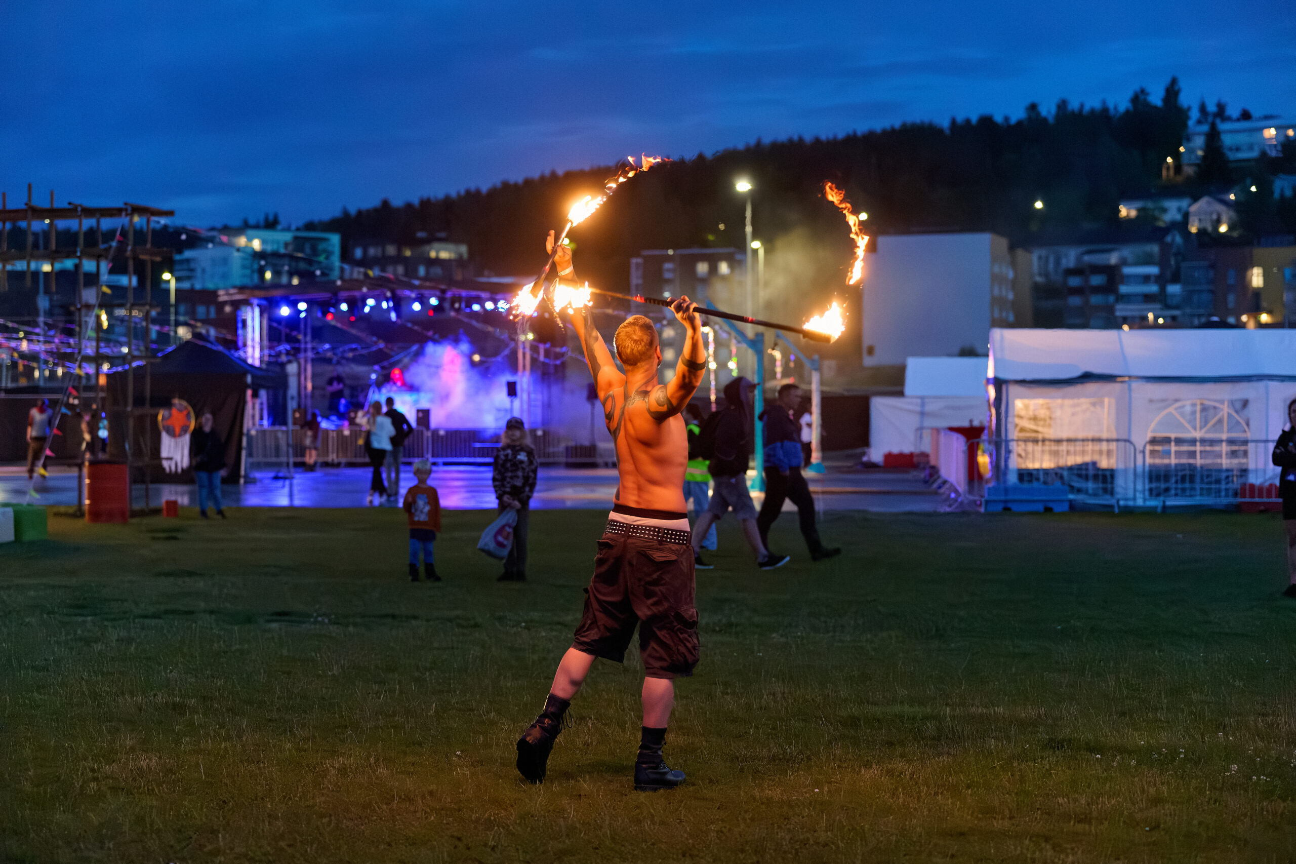 Asfaltoidun tapahtumakentän laidoilla olevissa