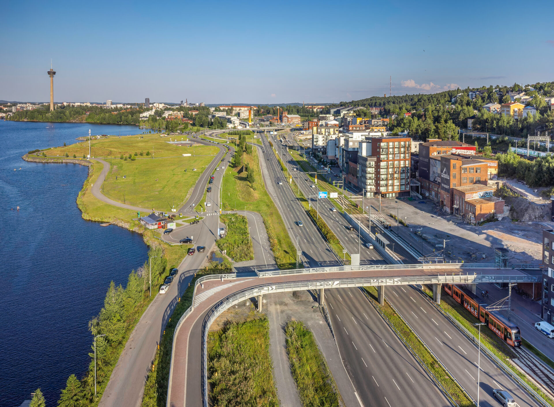 Ilmakuva Santalahden rantapuistosta Näsijärven rannalla.